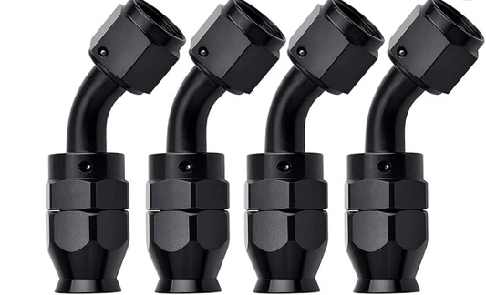 OctoMotive -4AN PTFE Hose End Fitting 45 DEGREE Black for PTFE Hose Only (1)