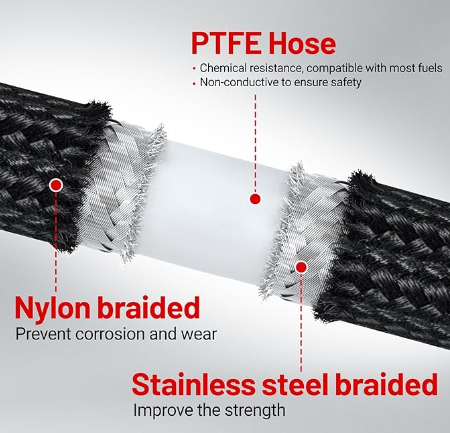 OctoMotive Universal -4AN PTFE Fuel Line Kit, -4AN E85 Nylon Braided Fuel Hose 20FT