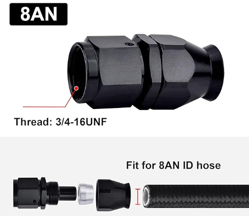 OctoMotive -8AN PTFE Hose End Fitting Straight Black for PTFE Hose Only (1)