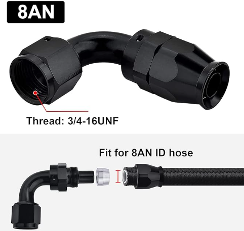 OctoMotive -8AN PTFE Hose End Fitting 90 DEGREE Black for PTFE Hose Only (1)