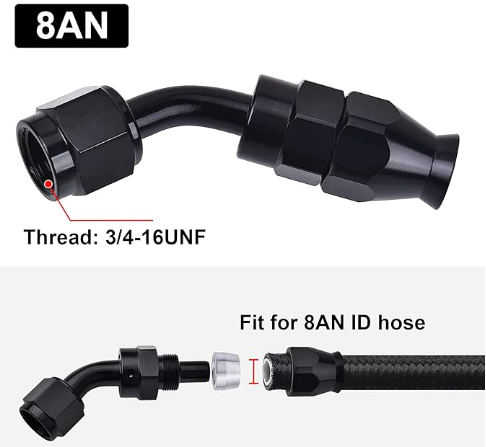 OctoMotive -8AN PTFE Hose End Fitting 45 DEGREE Black for PTFE Hose Only (1)