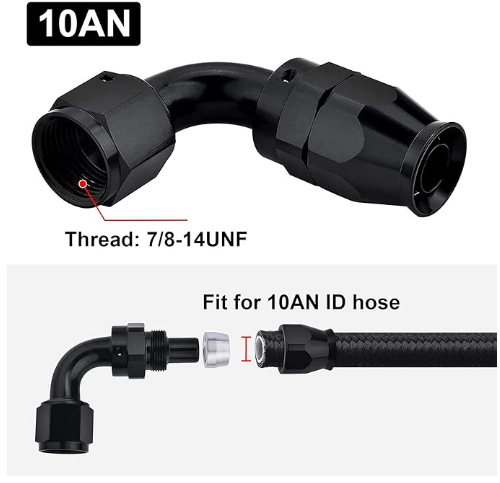 - [Size] Thread Size of 10AN PTFE Fitting is 7/8-14UNF.