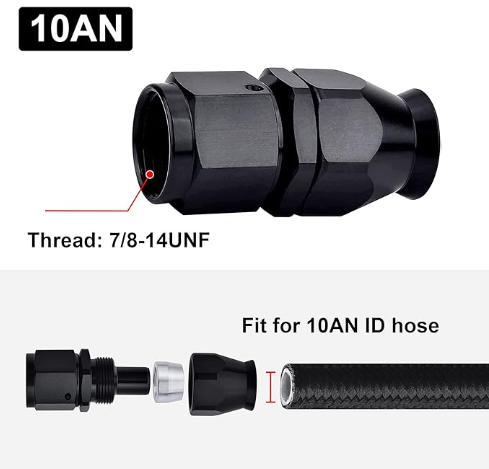 - [Size] Thread Size of 10AN PTFE Fitting is 7/8-14UNF.